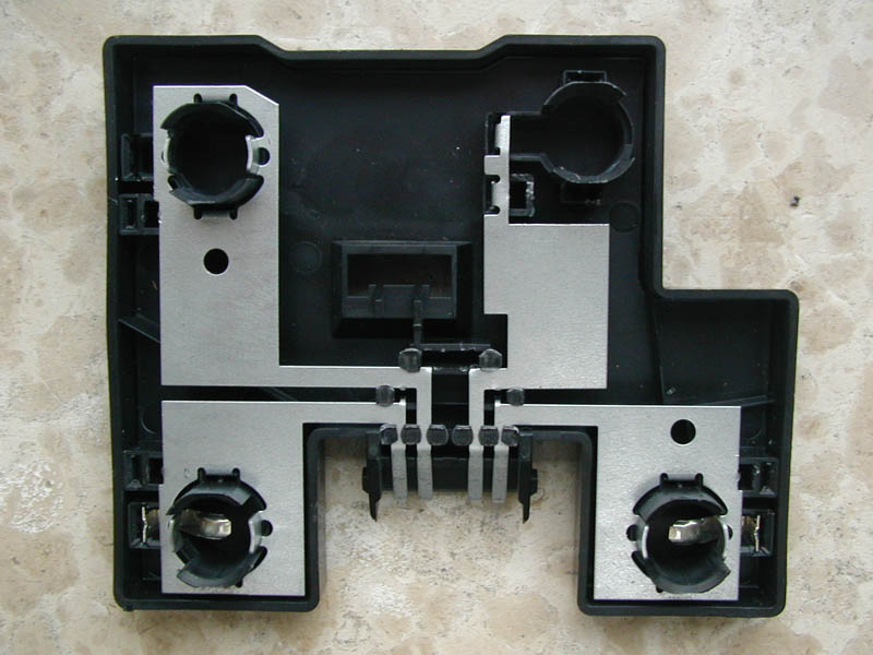 Die beiden mittleren Metallbahnen sind entfernt und mit einem Cutter wird nun das Kunststoff wie auf dem Foto herausgeschnitten.